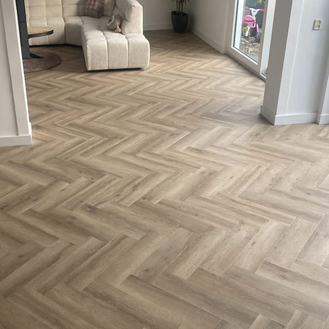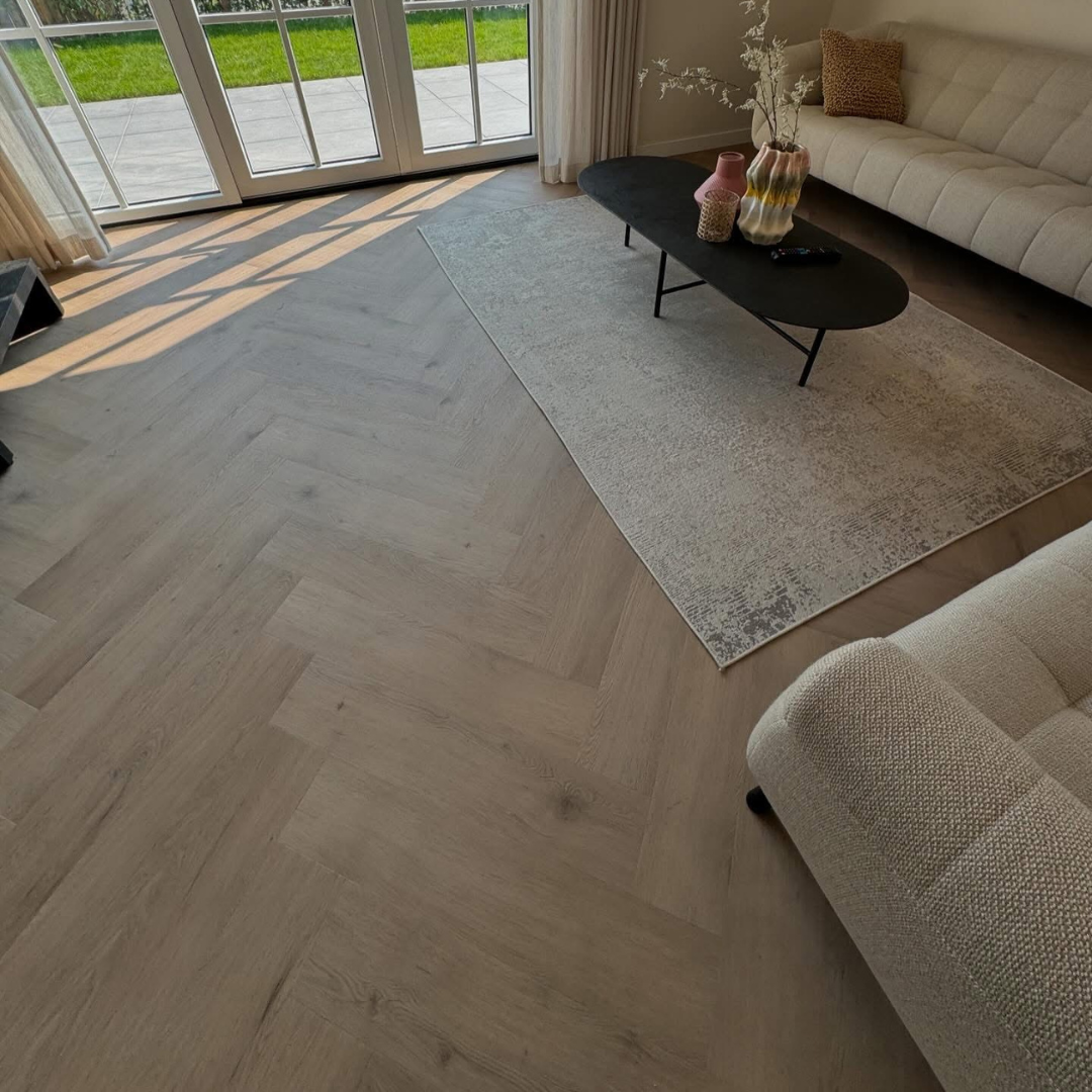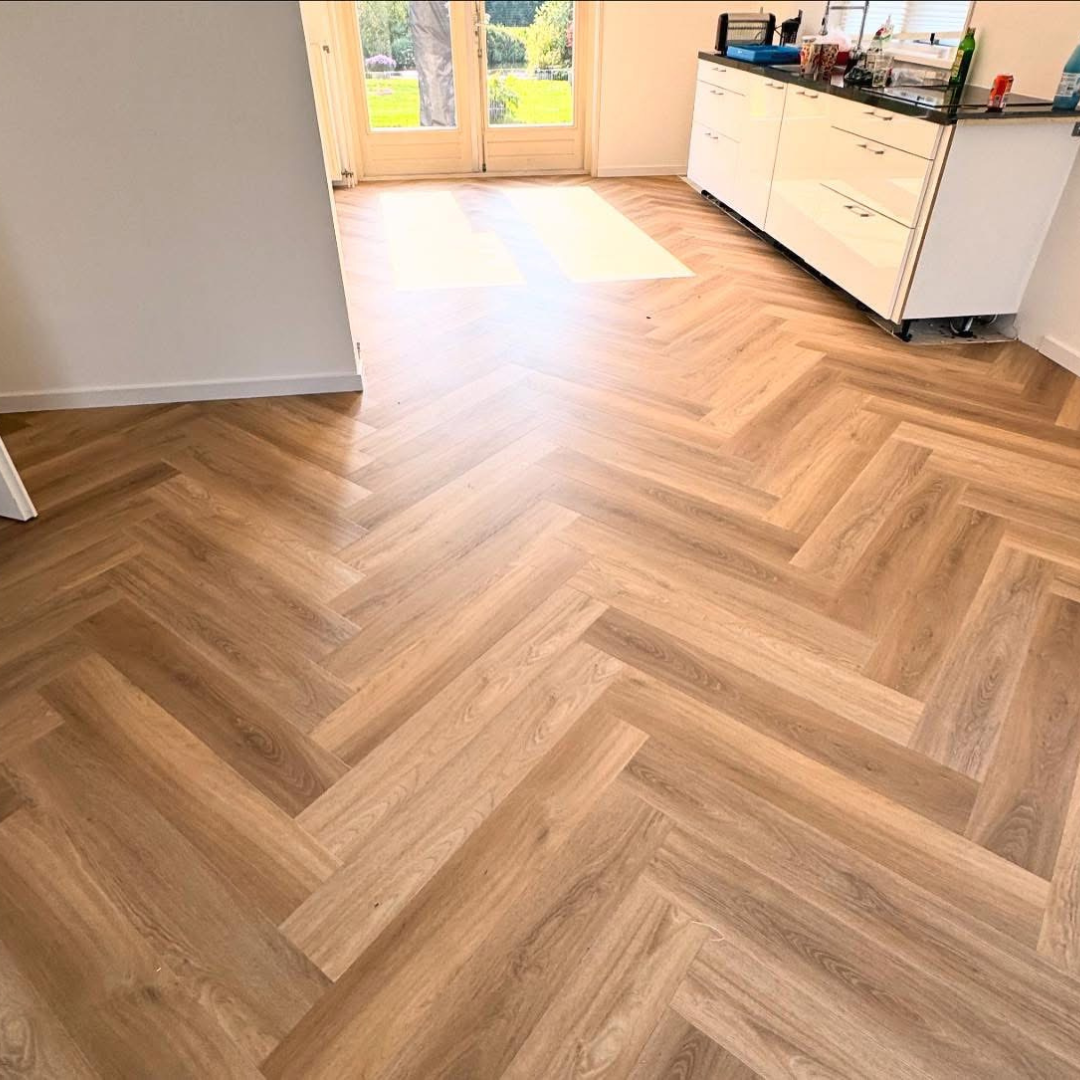 In Bolsward een mooie PVC visgraat vloer gelegd, hier is de 6810 van Viva Floors in gekomen.